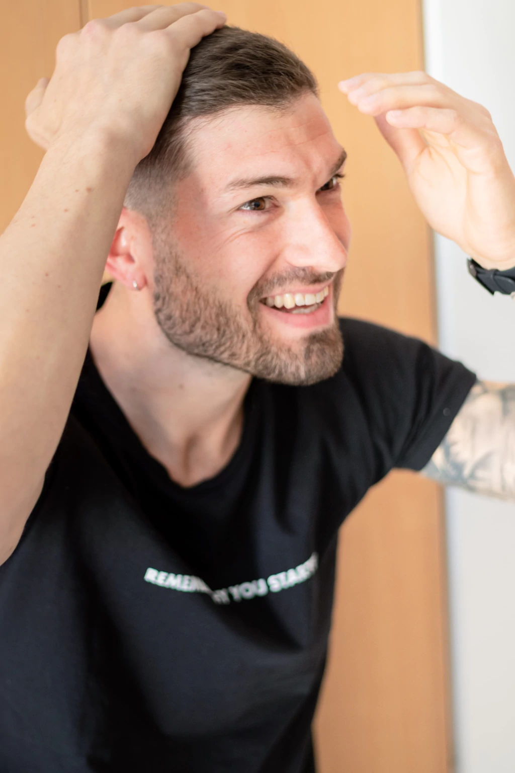 ▪️ Pasá las manos por la zona que querés peinar y movelas para que el polvo se distribuya